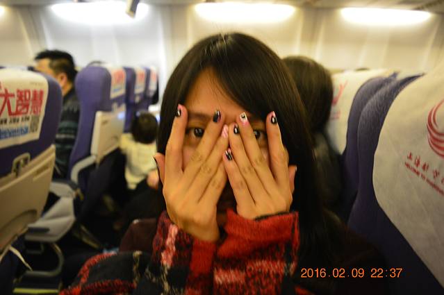 从广州白云机场到上海虹桥机场要两小时左右,所以我们都无聊到用相机拍照了。