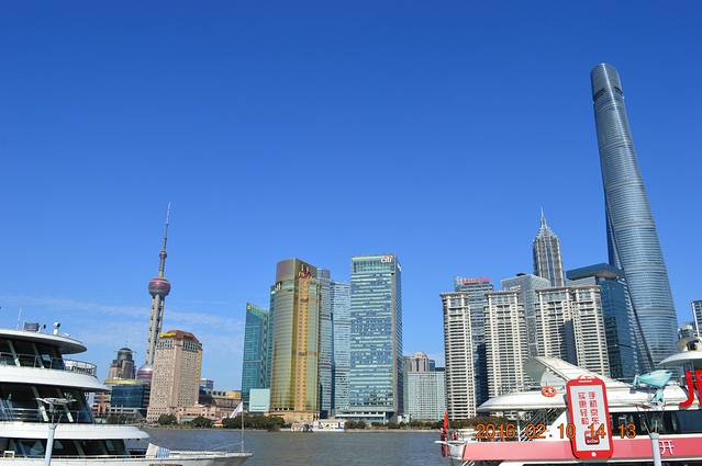 外滩有一个游轮码头可以坐船到对面的东方明珠,码头就在这些建筑物的正对面,2元一位,时间大约10分钟,船的班次开得也挺密集的,所以不要担心坐不到。如果不想坐船,也可以选择搭地铁,1号线陆家嘴路站3号出口出就可到达东方明珠。