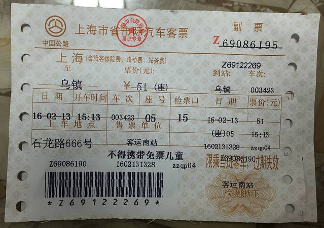 汽车票我是直接在上海长途客运南站的微信公众号买的,很方便,而且上海到乌镇的班车也很多,所以不用担心买不到票。