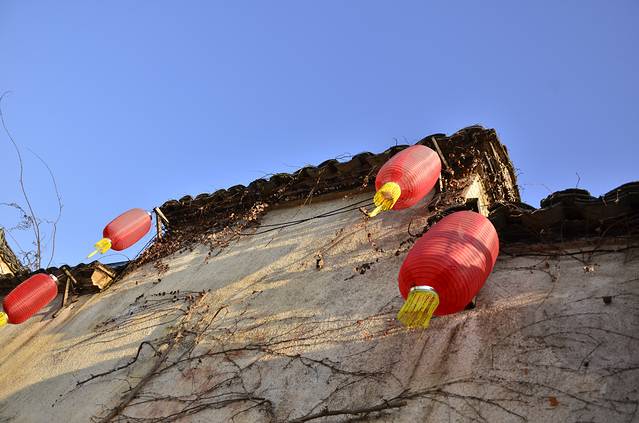 刚过完春节,大红的灯笼和对联,为这水墨般的村子增添了点别样的色彩。