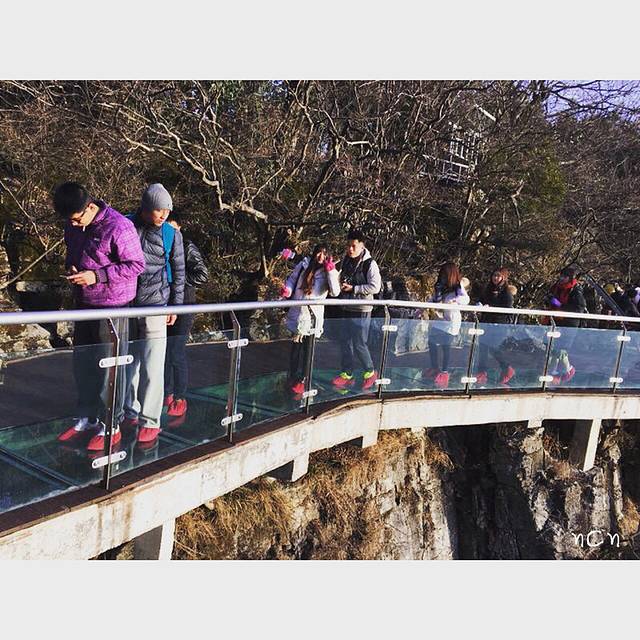 传说中的玻璃索道 这里说一下 你在排队买门票的时候很多人会叫你买鞋套。其实是没有用的 因为他会提供给你 你只需付5元的过桥费就好了 其实也没有想象中那么恐怖 只要你不往下看哈哈哈哈