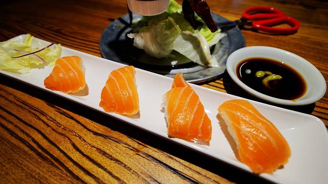 这是赠送的鱼生寿司,没想到还有赠品,所以格外高兴。
