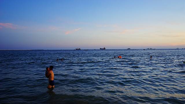 最后再来几张三亚的美景,其实收费景点都不用去,三亚处处都是美景。例如大东海,在这里待上三天三夜都不会腻。这里沿着海边有长长的海岸酒吧长廊,中午太阳太晒,或者玩得累了,可以在这里点杯饮料,休息一下。海风吹拂,海浪轻涌,看着沙滩上的游客嬉笑打闹,也是一种非常愉快的享受呢。除了海岸酒吧长廊,这里还有南海明珠广场、热带雨林广场、滨海情侣观光路、绿色长廊及滨海浴场等设施,比起亚龙湾开放的那一块的免费公共浴场要好得多,而各种消费,例如小吃、餐饮、娱乐项目等的价格也要比亚龙湾便宜得多