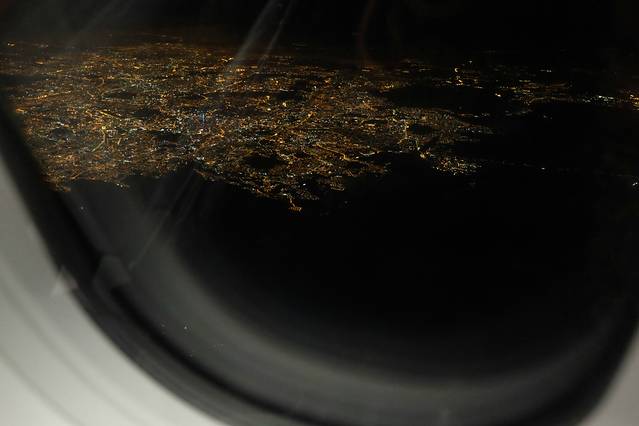 8月1日的凌晨我们终于登机了。酣睡的何3整晚被我闹,激动的我感叹天空与城市的魅力。还吃了一份难吃的飞机餐。
