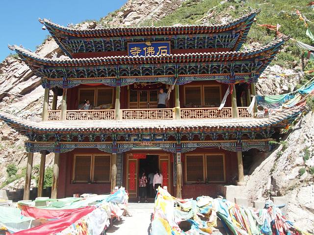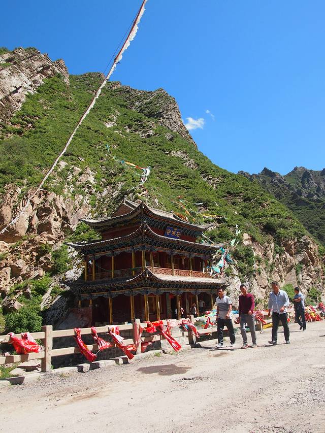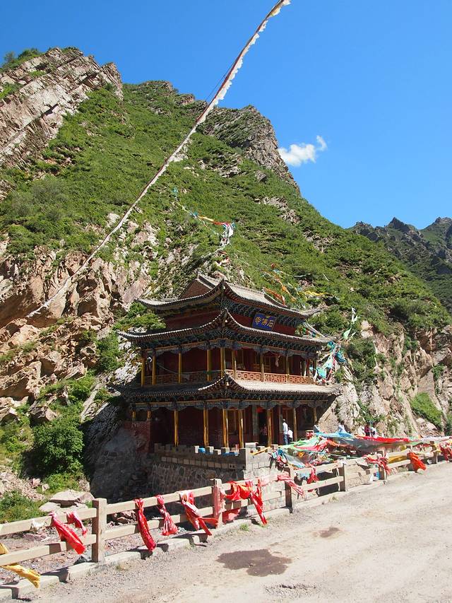 看完油菜花,我们开始进入祁连山了,这是我们行程里没有的一部分,张姐到这里停下车让我们去看看,她说这个寺立面有一尊很大的佛,据说是天然形成的,曾经有很多人要开山,来炸这尊佛像,可是不管怎么样,周围的山都被破坏了,可是这尊佛却纹丝不动,完好无损,后来就建成了路上的一个寺,把这尊佛保护起来啦。是不是很神奇呢,来看看吧!