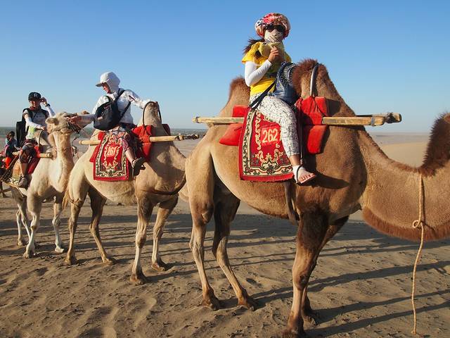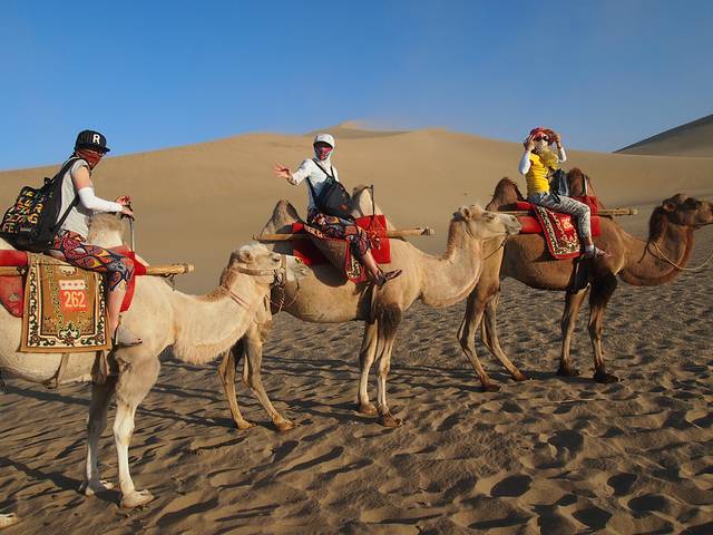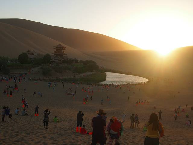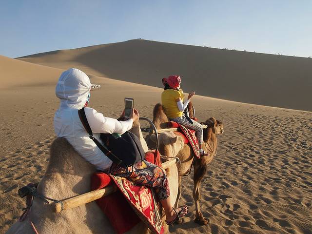 哇、、、真的是第一次见沙山 骑着骆驼 好有感觉的说 再看看月牙泉 感受一下夕阳