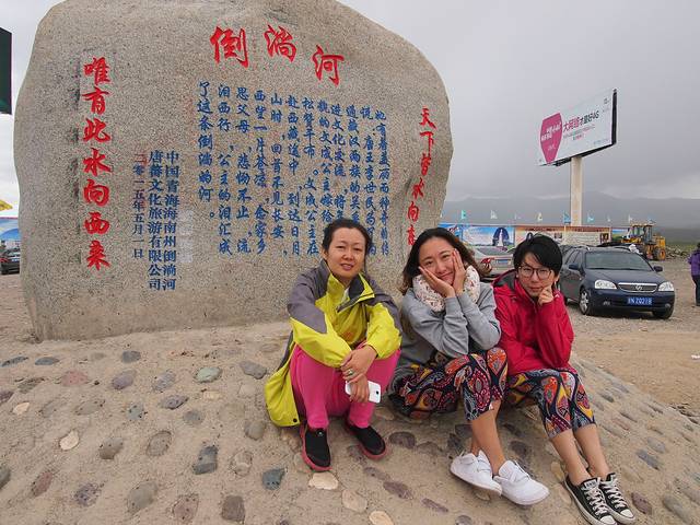 继续沿山路走 就到了倒淌河 这里还有一个关于倒淌河的故事(请问度娘吧)我们也没有进去 在外面就可以看到河 为了节省时间 我们在大石头前合影留念 气温还是很冷的 天还有点淅淅沥沥的小雨