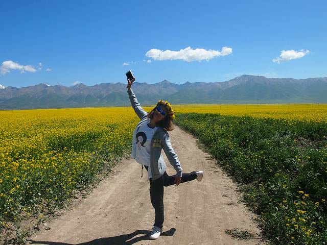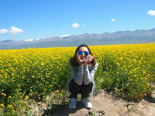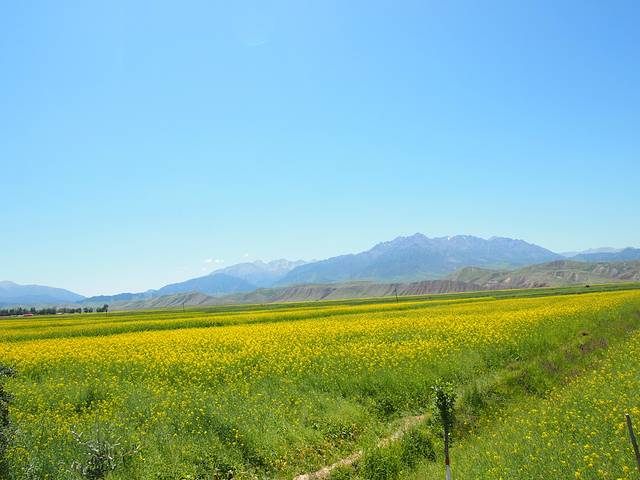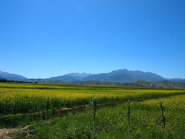 祁连山脉不愧是分界的山岭,好长呀,今天我们还在她的怀抱里奔波,哈哈!然后我们就到了下一个油菜花的经典——门源