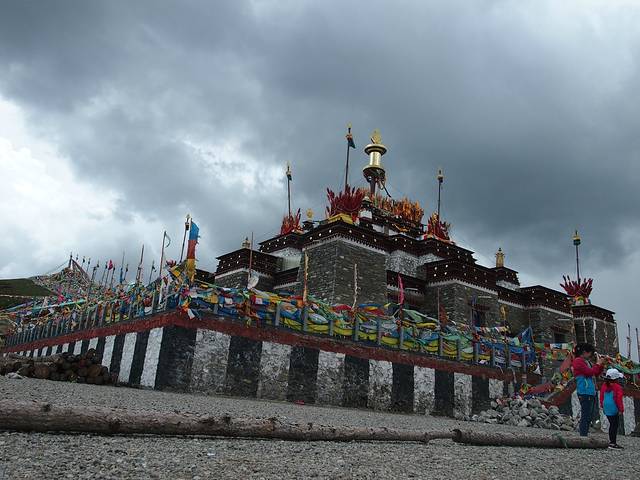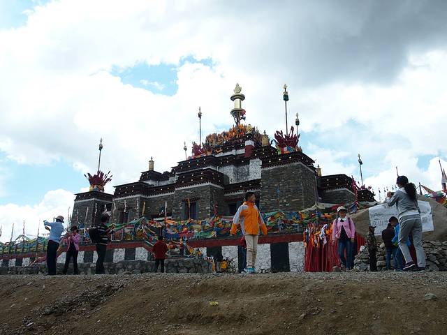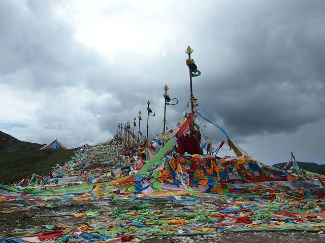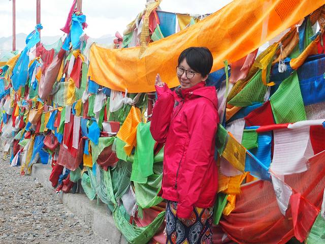 我们到了海拔最高的地方了 温度很低 穿冲锋衣还会觉得冷 会出现轻微的高反 尽量调整呼吸 走路不能太快 山上有藏民的帐篷卖些小礼品还有牦牛酸奶 这里很安静 经幡 玛尼堆 可以让心变的干净,可以听见自己呼吸的声音!