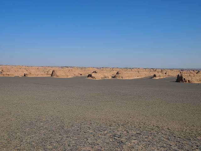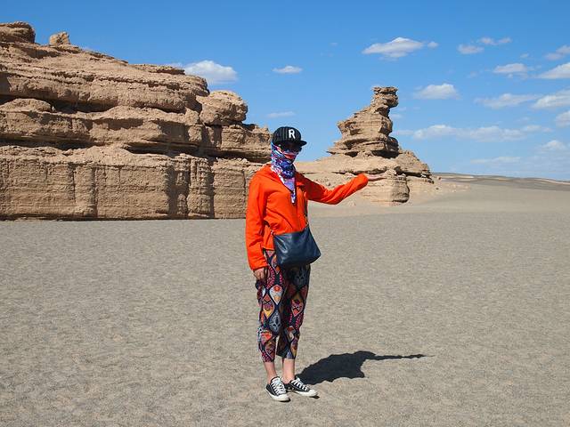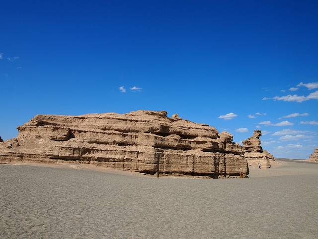 从玉门关进去 到雅丹地质公园 还要走很远的 但是印象很深刻 这里的路走一段就会有一个凹下去的缓坡 张姐说这个缓坡是为了泄洪的 这个设计还是很有意思的 车开过去 不要减速 突然一个下坡接一个上坡 一路上好像在坐过山车一样 哈哈