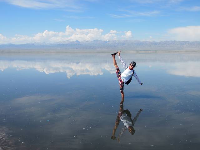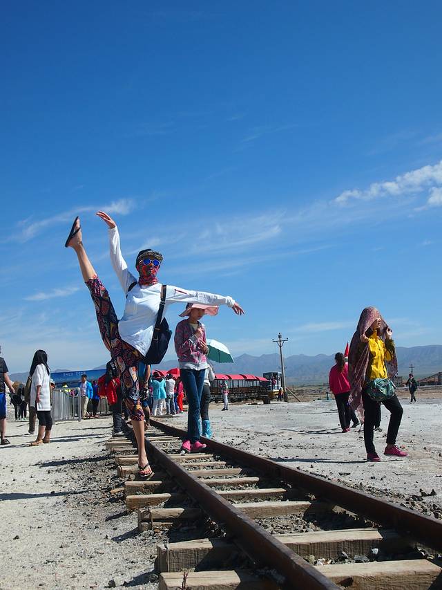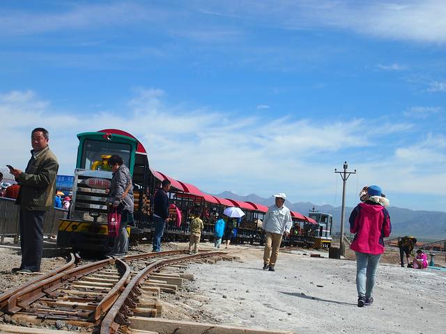 我们看完日出就出发前往茶卡盐湖了 但是到了就已经有好多车和游客了 车要进停车场等着 人下去去排队买票 买好票才能再开车进景点 排队的人很多 车都堵在停车场 所以一定要早些去 这里进去看看没有之前网上的照片那么美 但是拍出来的照片很美 张姐说茶卡盐湖是你不去后悔 去了也后悔的地方 好纠结 但是照片那么那么美 所以没的说 必须去啊 景区的小火车因为游客太多已经停运了 湖里的盐质被破坏了 岸边的地方水都是泛着泥的 有点黑黑的 水还是很深的 去的时候最好是穿拖鞋或者准备鞋套 不是那种水很浅 穿鞋进去 水薄薄的一层那样