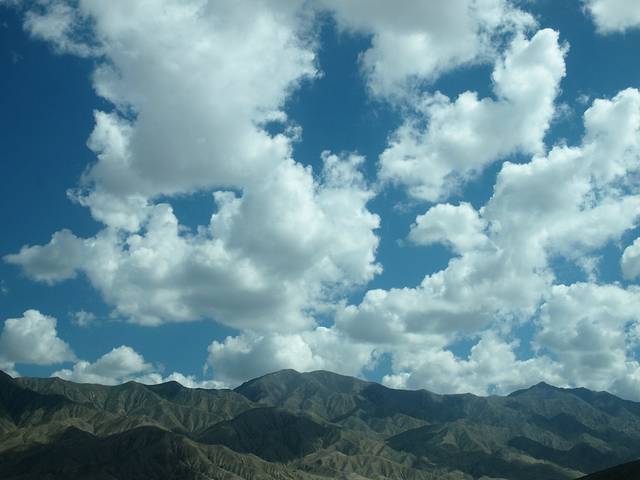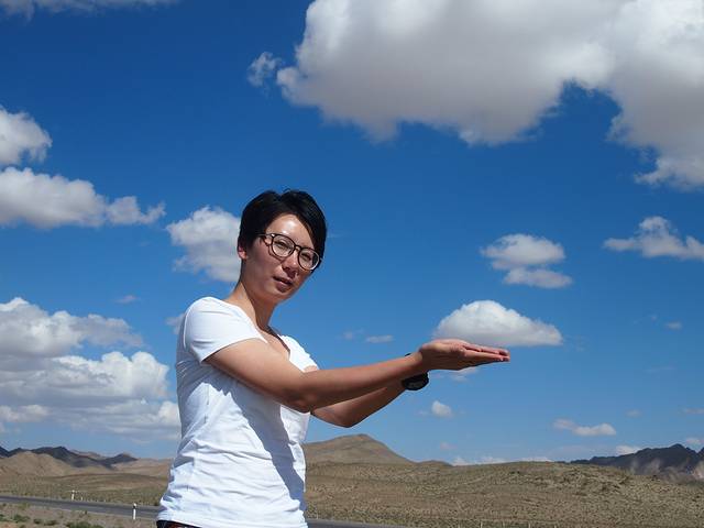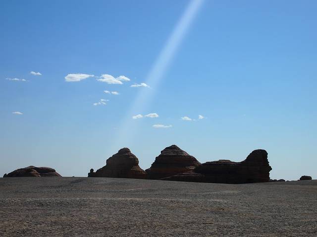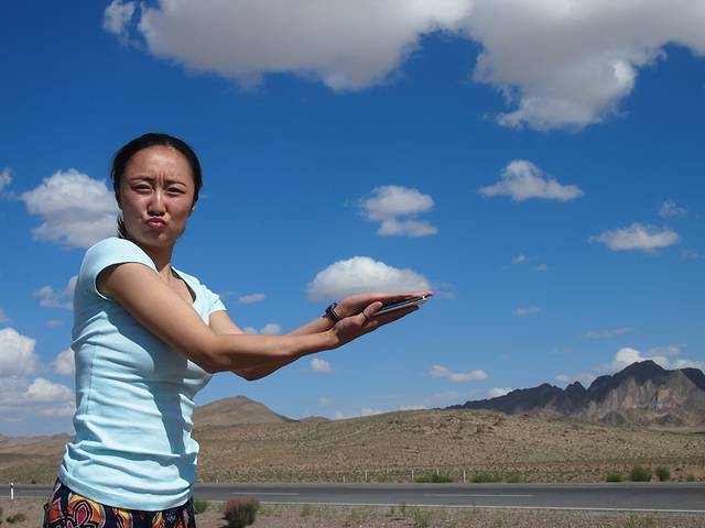沿途景色开始由戈壁过度到沙漠 绿植越来越稀少 可以看到浅浅的海市蜃楼 和小龙卷风 天还是很蓝 云那是那么白 透着金色的阳光