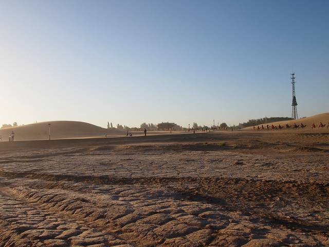 然后跟着青旅的车到鸣沙山背面露营 因为我们从景点出来有点晚 没有赶上滑沙和沙漠摩托 好可惜