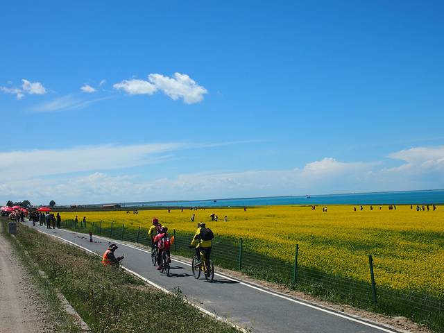 开始进入青海路 在环湖西路 这里有大片的油菜花 没法用语言形容 真的是要亲身体会 看图片吧还是