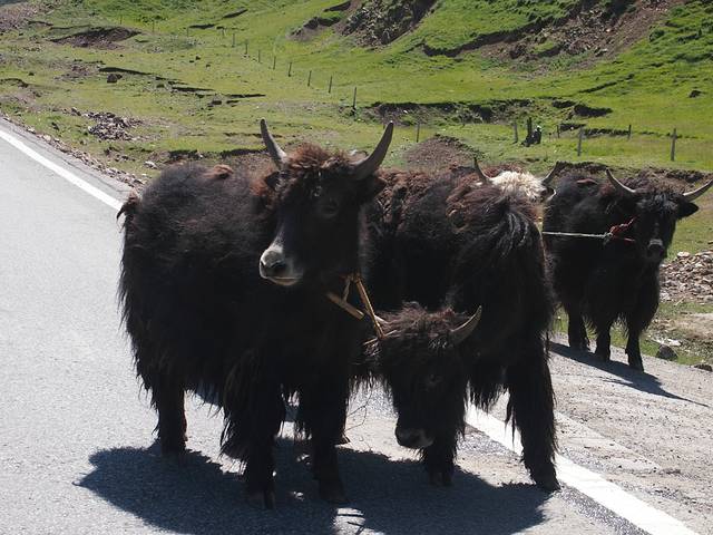 车就在这样的山间行驶 偶尔可以停下车 跟路边的山羊拍照
