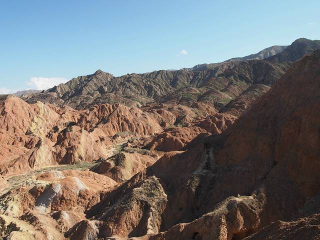 一早从帐篷出来 回到青旅 洗漱了一下 又出发啦。。。张掖,走起!!!因为昨天大家都很累了,所以一路上都在呼呼大睡没有拍照了,然后就直接到景区了!这是一种很奇特的地貌,形成这种地貌要很多年,但是只是表面薄薄的一层,很容易就被破坏了,所以大家去的时候一定不要上去踩哦!