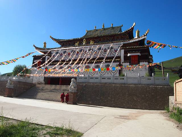 这是一个很清静的寺庙,在这片大山里,显得很纯净,进去看看,经幡飘飘,出来的时候遇见几个小和尚,大概只到我腰那么高吧,本想偷偷拍个照,可是其中一个突然说,不要拍照,哈哈!还挺有意思的哈!
