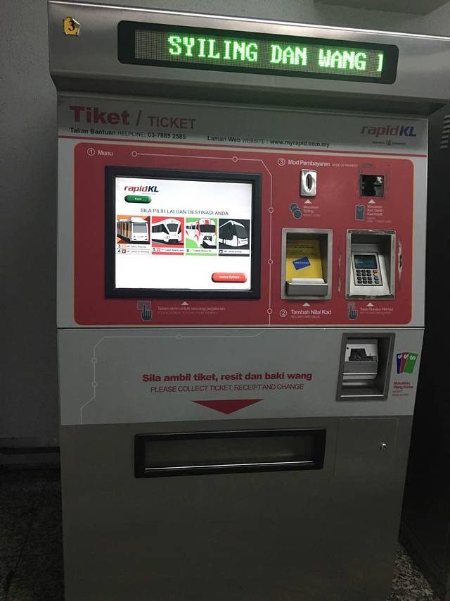 地铁自动售票机只接收一元,5元纸币和硬币,可以去信息中心换零钱,基本上2站1.6,3站1.9,5站2.4。去KL Centre换乘KLIA Express半个小时到机场。
