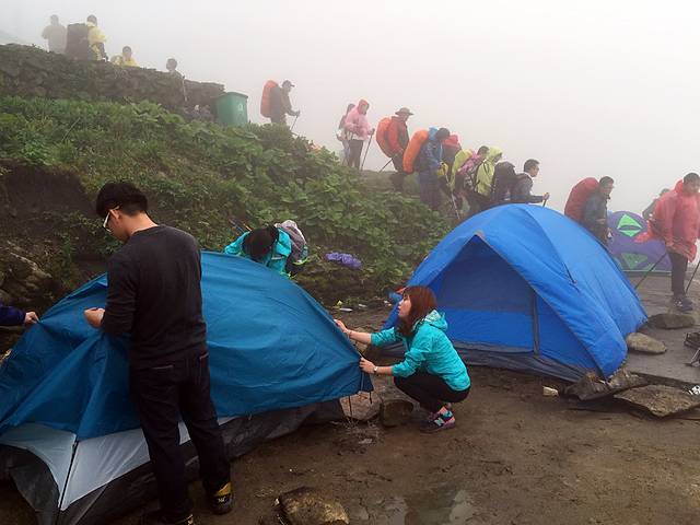 大家忙着搭帐篷