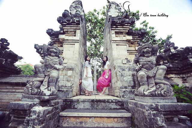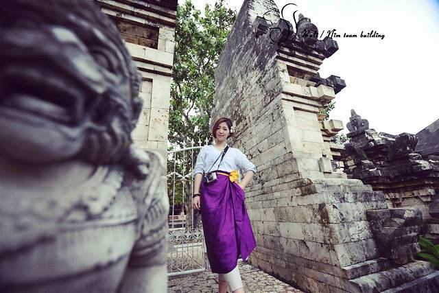 巴厘岛的庙,是不允许光着下身进入的,所以大家都得披着这身围裙,不过,入镜的效果还称得上应景,在这石像门前,你看到了什么?