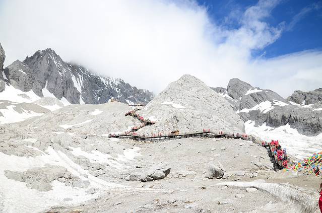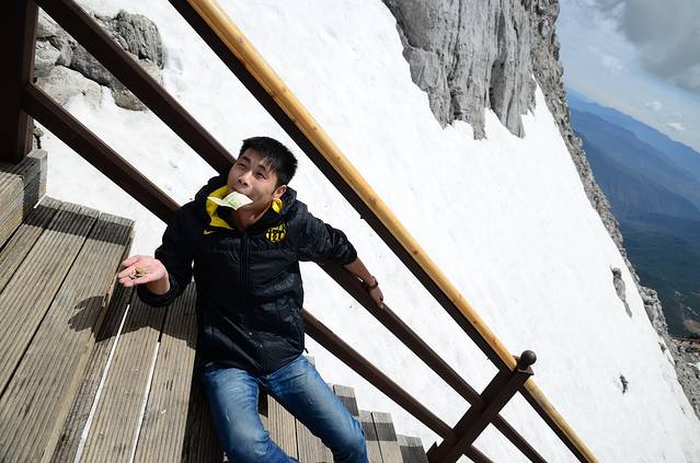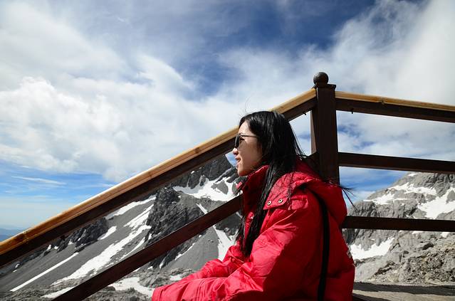 这里有必要解释一下,上玉龙如果是自己排队,可能会比较省钱,但是,跟团的好处是,不用排队,直接买票,上缆车(有些团可能没这个权利,有兴趣的同学,可以找我问这家团的名字,他们是有特权的)。所以,这样可以节省很多时间,氧气瓶和大衣预备着,不怕一万就怕万一吧。