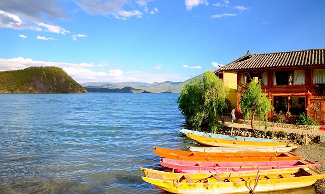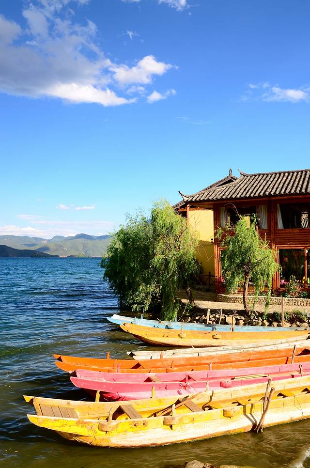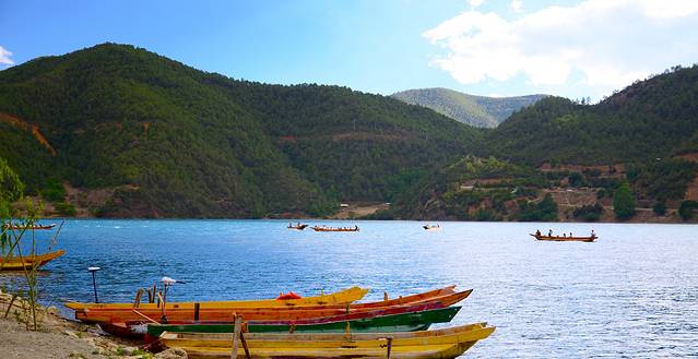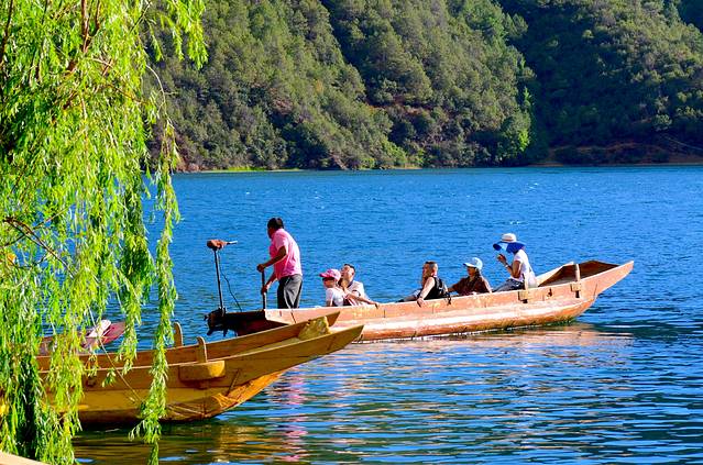 饮泸沽湖水,看仙女湖景,乘一叶扁舟,得人生极乐