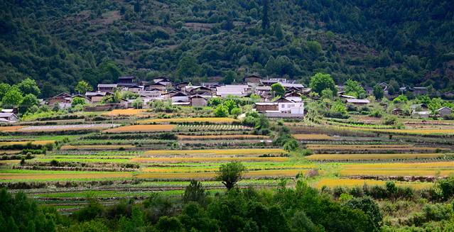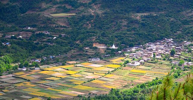 路途中,经过长江第一湾,可惜,走高速无法拍出第一湾的景象,倒是经过的彝族村落,显得非常美妙,以雪山为背景,照片确实很美
