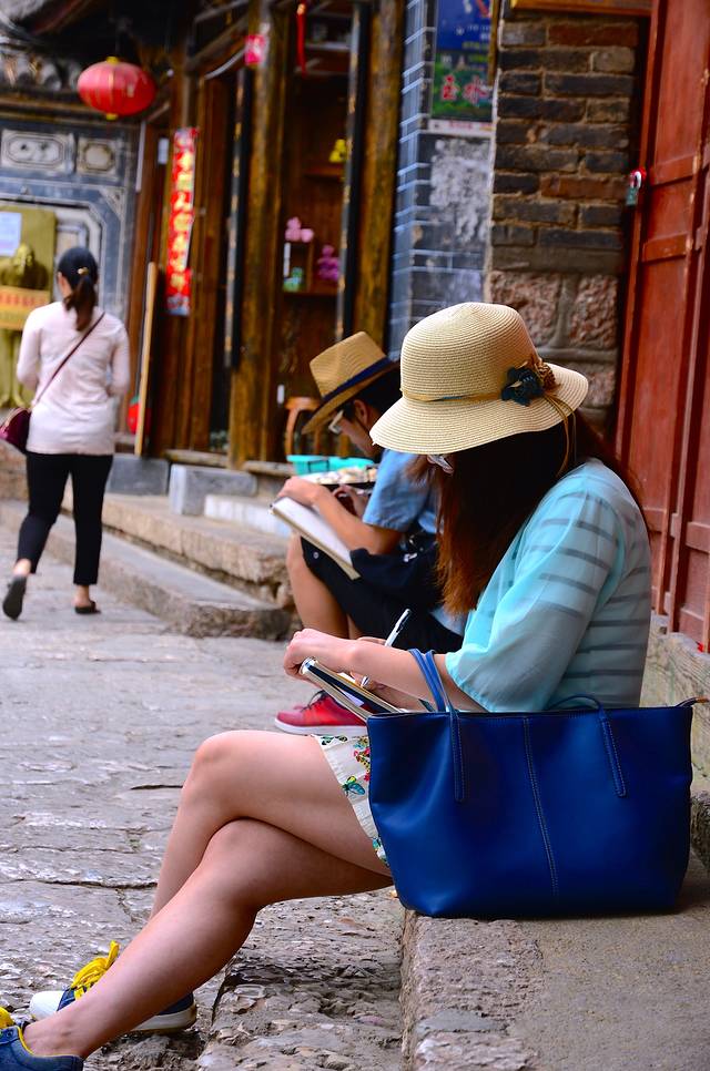 丽江有很多人写生,画景色的,也有画人像的,总之文艺青年挺多
