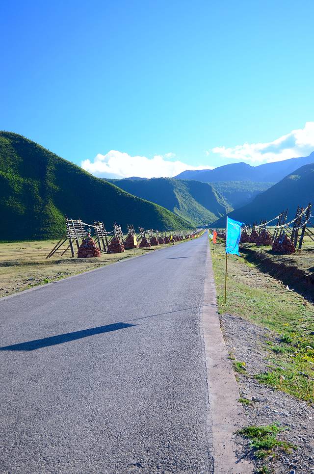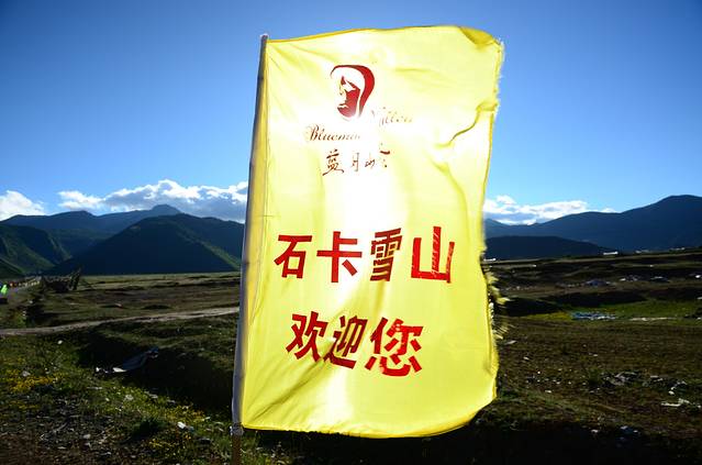 客栈就在石卡雪山脚下,边上就是青稞大道了,很美的一条道