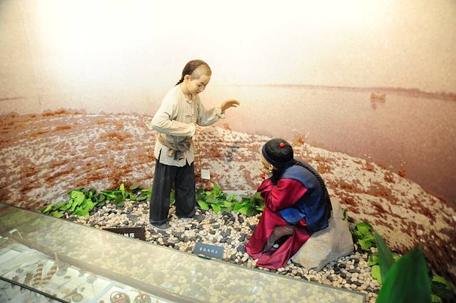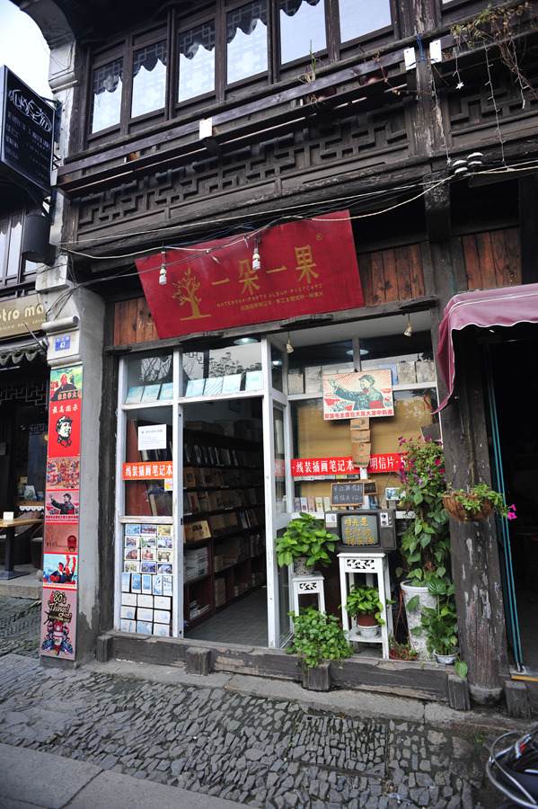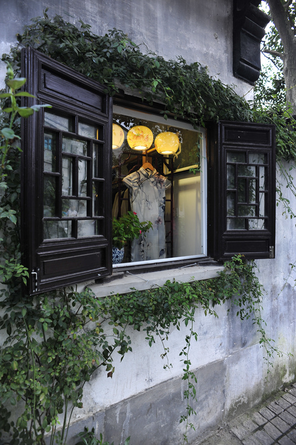 木渎古镇修的比较新,各处都是新的商铺,这墙壁刻画了江南女子的多才多艺居家能干的贤惠