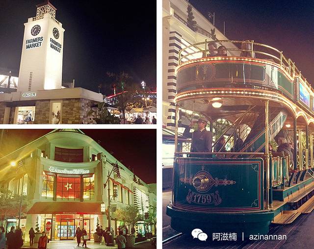 在洛杉矶农夫市场吃饭,这里集合了购物 美食以及各种特色的农副产品商店和排挡。与大型购物中心The Grove连接在一起,逛够了就可以吃饭休闲。有轨叮当车上坐满了欢乐的人群,这里可是体验老美生活气氛的好地方。