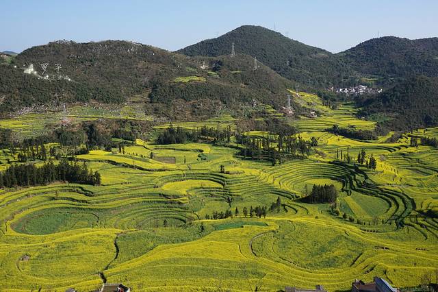 ↓ 顶着烈日一步步爬坡到达观景台,我也是蛮拼的,然而秀美的景致告诉我不枉此行...... 眼前这片金黄色,正是我脑海里最向往的春的色彩,此时此刻,我站在春色里,迷醉在这片大自然赋予的神秘色彩中......