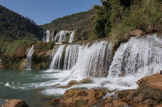九龙瀑布群景区,位于罗平县城东北20km处,被誉为“中国最美丽的瀑布”,主要由迎宾瀑、神龙瀑、石龙漫游瀑、情人瀑等景点组成。