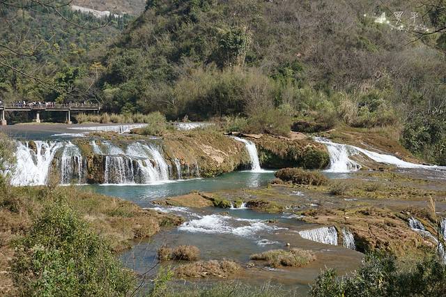 旅行第一站,我们选择了距离罗平县城20公里的九龙瀑布群景区。此瀑布群被誉为“中国最美的多级瀑布”,它虽没有黄果树瀑布的高耸和落差大,也没有跨国瀑布德天的宽阔和水量大,却有其独具特色的地方,在长长的河道上,沿着山阶形成了大小不一、形态各异的十级瀑布。