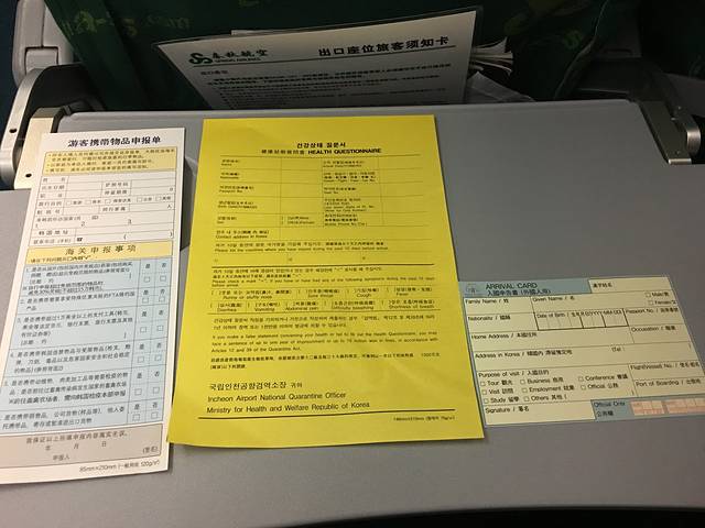 上了飞机之后空姐就给我们发入境单了。以前也做过好几个航空公司的飞机了,做春秋航空第一次出现很强烈的耳鸣反应,并且特别严重耳朵很痛,不知道为什么。