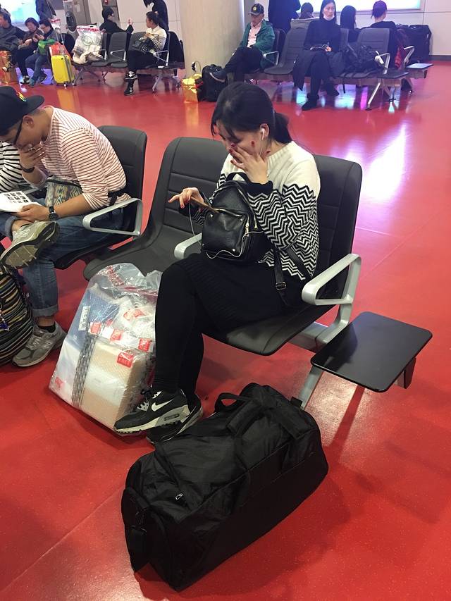 春秋航空规定手提上飞机和托运的行李加起来不能超过15KG,但是也没有检查我们的手提重量,因为我这一程是血拼之旅,所以基本上去的时候带的是空箱子哈哈。