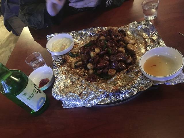 到了酒店之后我和闺蜜还没吃晚饭,已经是晚上十一点多了,超级饿,好在济州岛这里过夜生活,酒店下面的商业街还是很热闹,我俩就出去觅食。