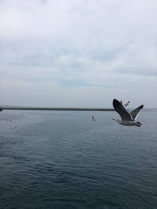 船一启动就有好多海鸥跟着船飞,抓拍了一张很满意哦。