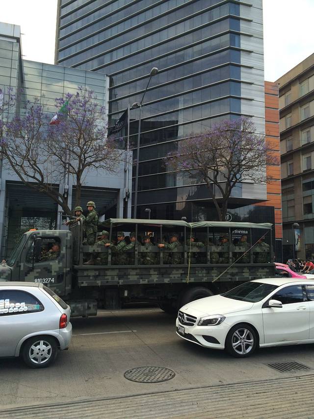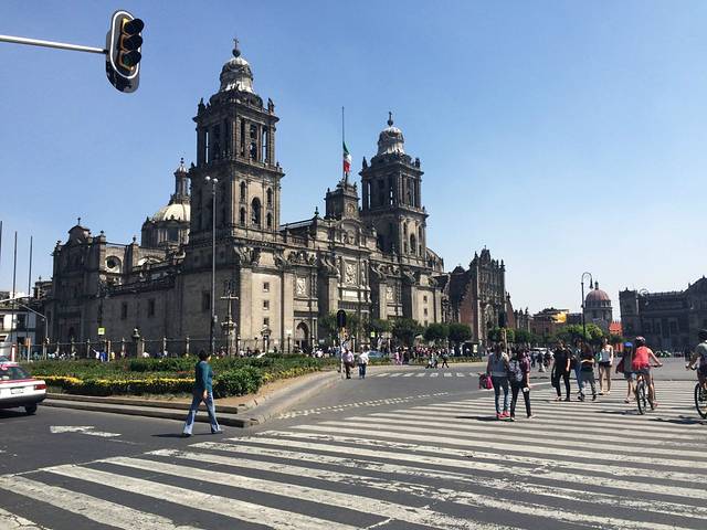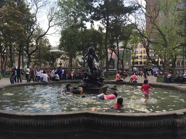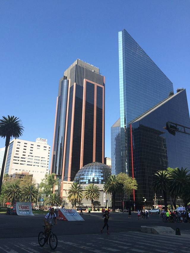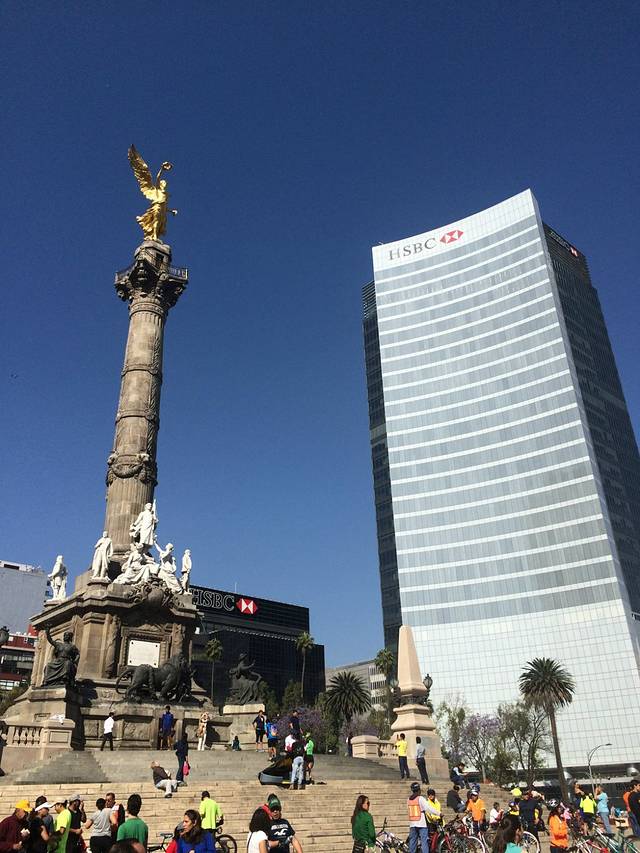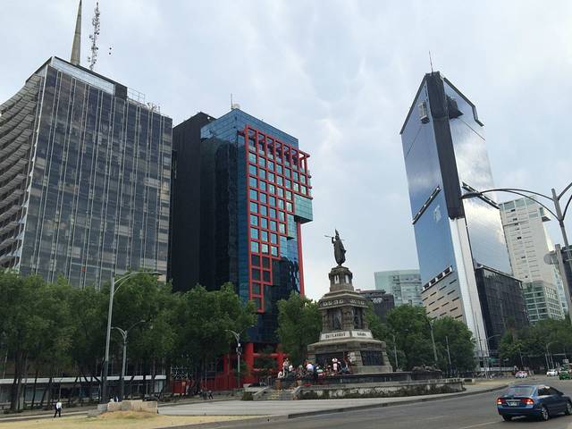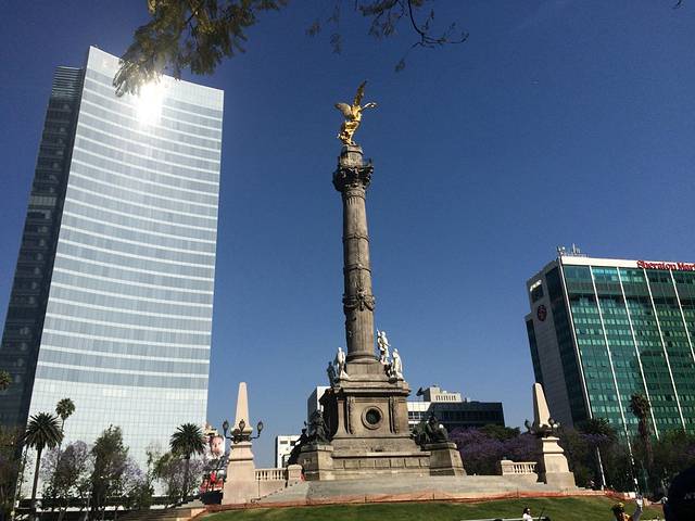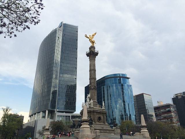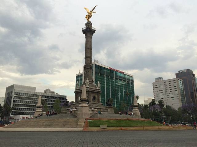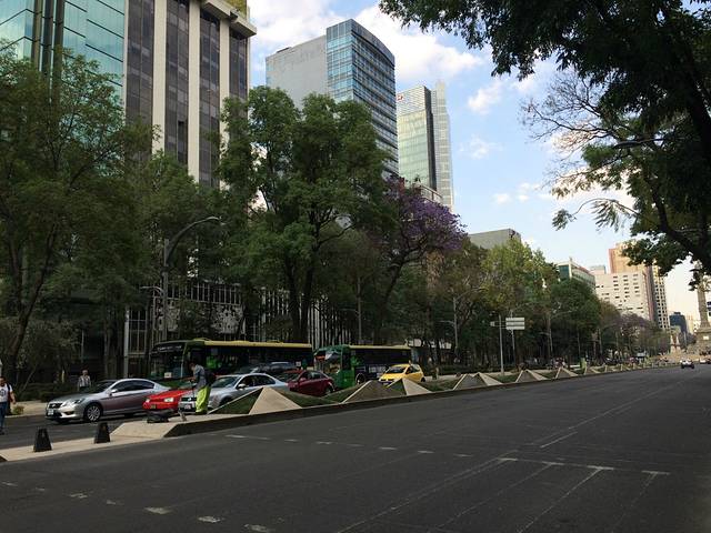 改革大道是贯穿墨西哥城区的主干道,相当宽敞,花园式绿化,两侧都有休闲步道,现代与古典建筑完美的融合在一起。路上遇到了从公园耍回来的人群,周末也是偕老带幼一大家,看着我们也是几分好奇,路上的亚洲面孔还是不多的。