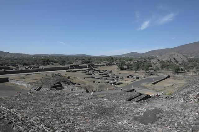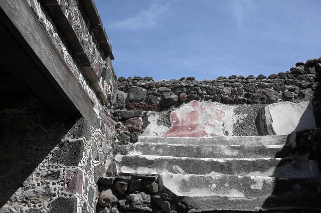 特奥蒂瓦坎的神官地位最高,他们负责监督指导严密的金字塔建造工程,他们在那时就已经掌握着丰富的数学和天文学知识,工匠们自下而上、逐级逐段的垒造,建造出一座座规模宏大的金字塔。现在暴露在空气中的石头墙壁曾经都经过颜料粉刷,是彩色的。其中一部分还能辨别出颜色,可以想象一下当时的画面有多么缤纷美丽。不像埃及的金字塔是法老的陵墓,这里的金字塔主要是祭祀用,神官能够精确的将金字塔结构与祭祀典礼的时间巧妙结合,虽然建造时间比埃及金字塔晚了很多,但还是要赞叹一下人类文明的辉煌!