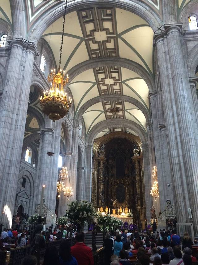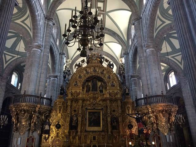 大主教教堂位于宪法广场北侧,是统辖墨西哥境内所有教堂的主教堂。用了250年才建成,内部是典型的巴洛克风格加上别具一格的墨西哥文化特色。正赶上周日,有大主教宣讲和弥撒活动。