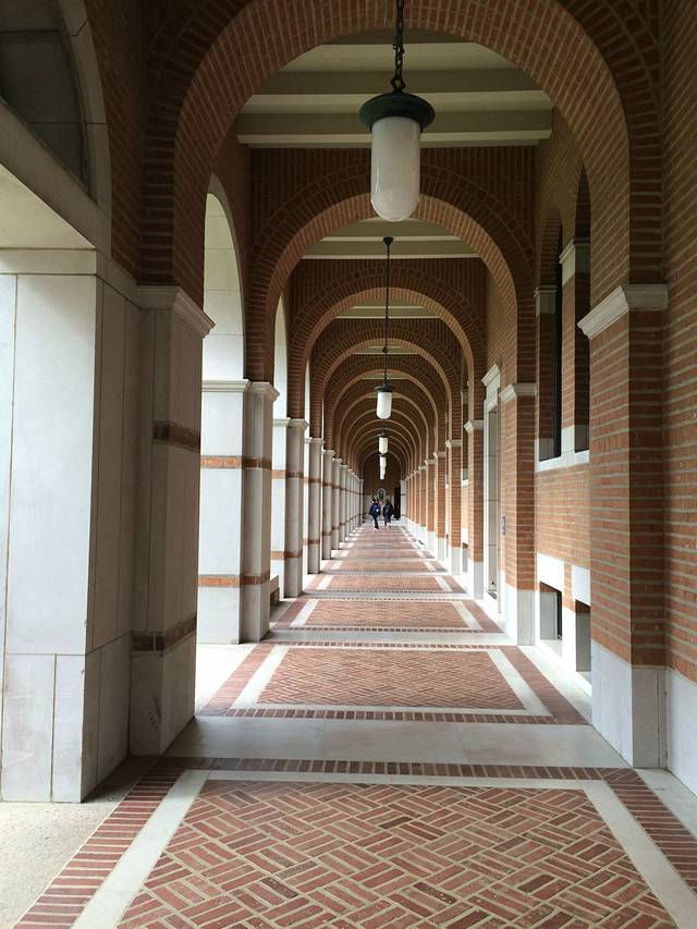 学校里的长廊是婚纱摄影常用的取景地,周末总会遇到一对对新人们。还记得有一次学校活动,我们一帮中国姑娘们来了个旗袍show,之后就是来这里拍臭美照。