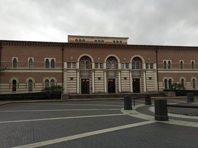 远眺一下音乐学院,Rice还算是一所综合性高校,音乐学院的排名也不错。硬件很好,有好几间单独的琴房,不是本系的学生刷学生证也可以使用。同学中有位学西班牙语的中国女孩,每天的作业就是读堂吉诃德,看西班牙电影,写各种书评影评,闲暇时间来练练琴,这让我们这些理工科女生艳羡不已,女孩子就应该这样才艺双修,不是成天和一堆公式电路打交道的不是嘛。