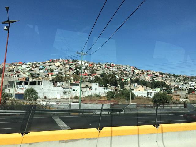 在去特奥蒂瓦坎的路上,经过了一个个贫瘠的山头,和沿山而建的密密麻麻的贫民窟,绵延十多公里,也够震撼。