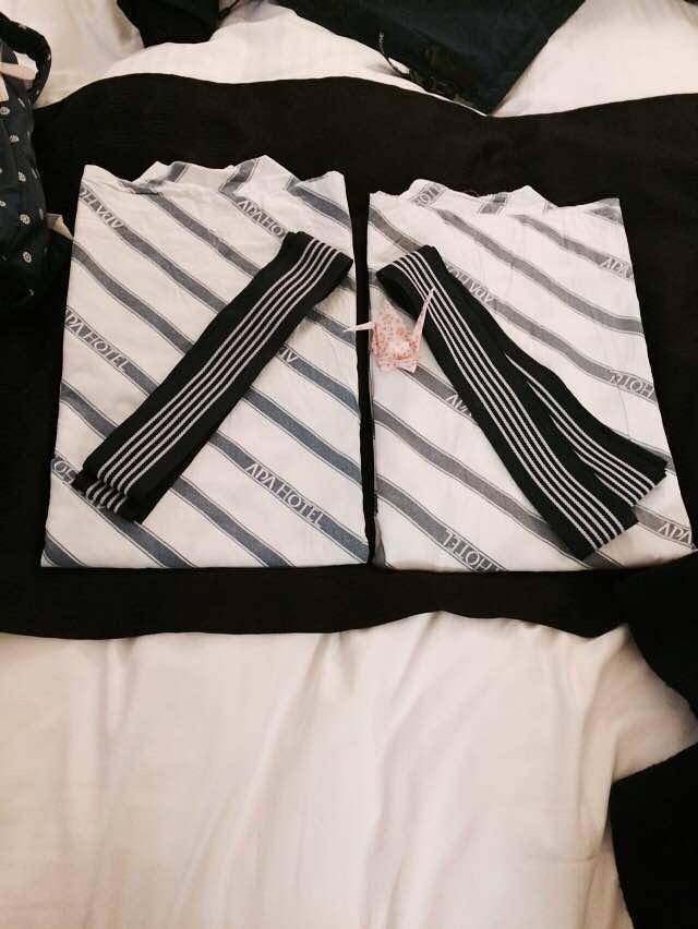 第一晚住的酒店房间小,但是东西却最齐全,设施也很好,这是睡衣 ^_^