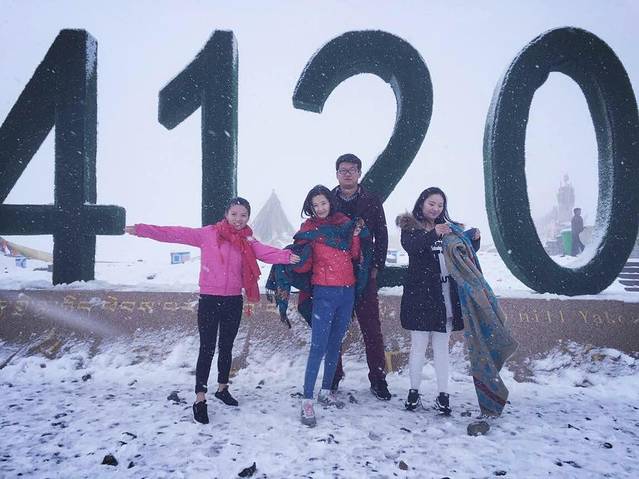因为去年来过一次,倒没那么兴奋了。虽然前两天的天气也特别差,但值得庆幸的是我们遇到山顶大雪,夏天里感受雪天就很兴奋。哈哈。。。