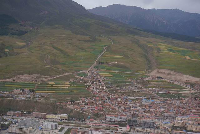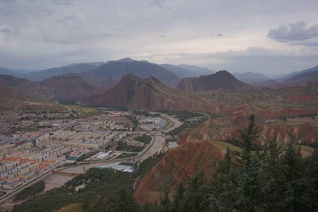 下面红色的屋子就是祁连县城,此时我们是在卓尔山上。