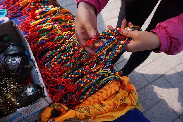 七彩的编织带,第一天到青旅住宿时 老板就一人送给我们一个了。象征着平安和祝福吧。