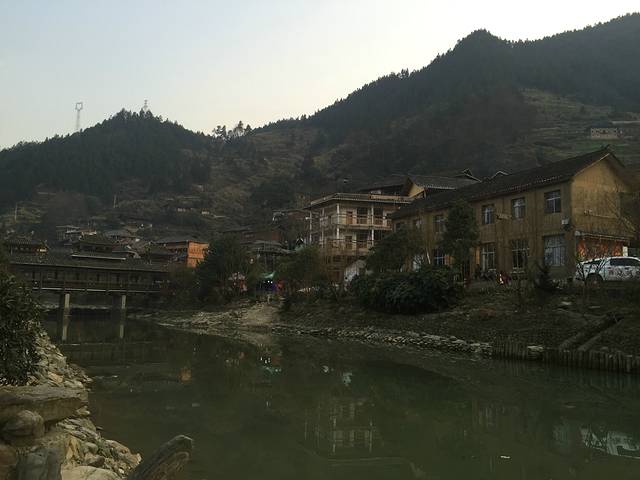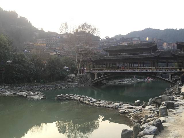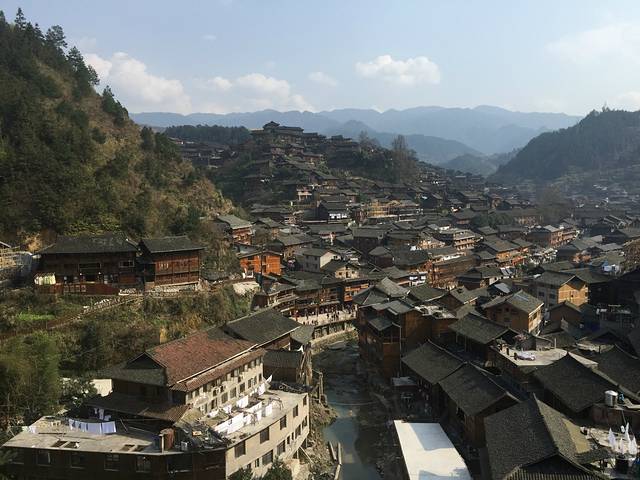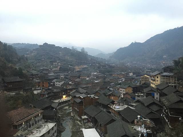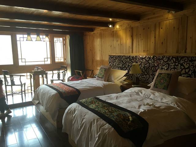 房间是在顶楼4楼标间,太赞了!!!无敌的山景,这都不用去观景台了,酒店房间就自带观景了啊。房价588元含早,超值了!!真心推荐这家酒店,地理位置好,服务好,房间好,早餐也不差!!!我们住顶楼,所以不存在隔音的问题。苗寨是多雨的,春节前一周还下了雪,我们来的这天是大晴天,特别幸运!
