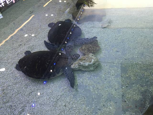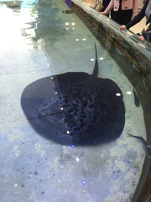 吃饱喝足逛一下鸿通城,里面有个鱼池。仔细一看真不简单!大海龟、蠔、海鳗、魔鬼鱼、鲨鱼,还有很多银枪鱼。三分之二的银枪鱼身上都有伤,估计是被这些凶猛的大鱼给咬的。我觉得这样的设计很不合理,就一面玻璃罩着周围,也没有封顶,池塘很浅,小孩很容易触碰水面,里面都是有攻击性的鱼种,要出事是很容易的。